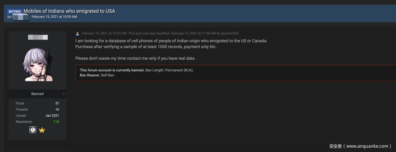 图3- RaidForums上买家购买手机数据库数据的帖子