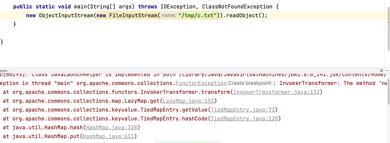 观察_auxClasses属性发现被transient修饰,无法通过反序列化控制值,如果直接调用_auxClasses.put会抛出空指针异常,导致代码执行中断。