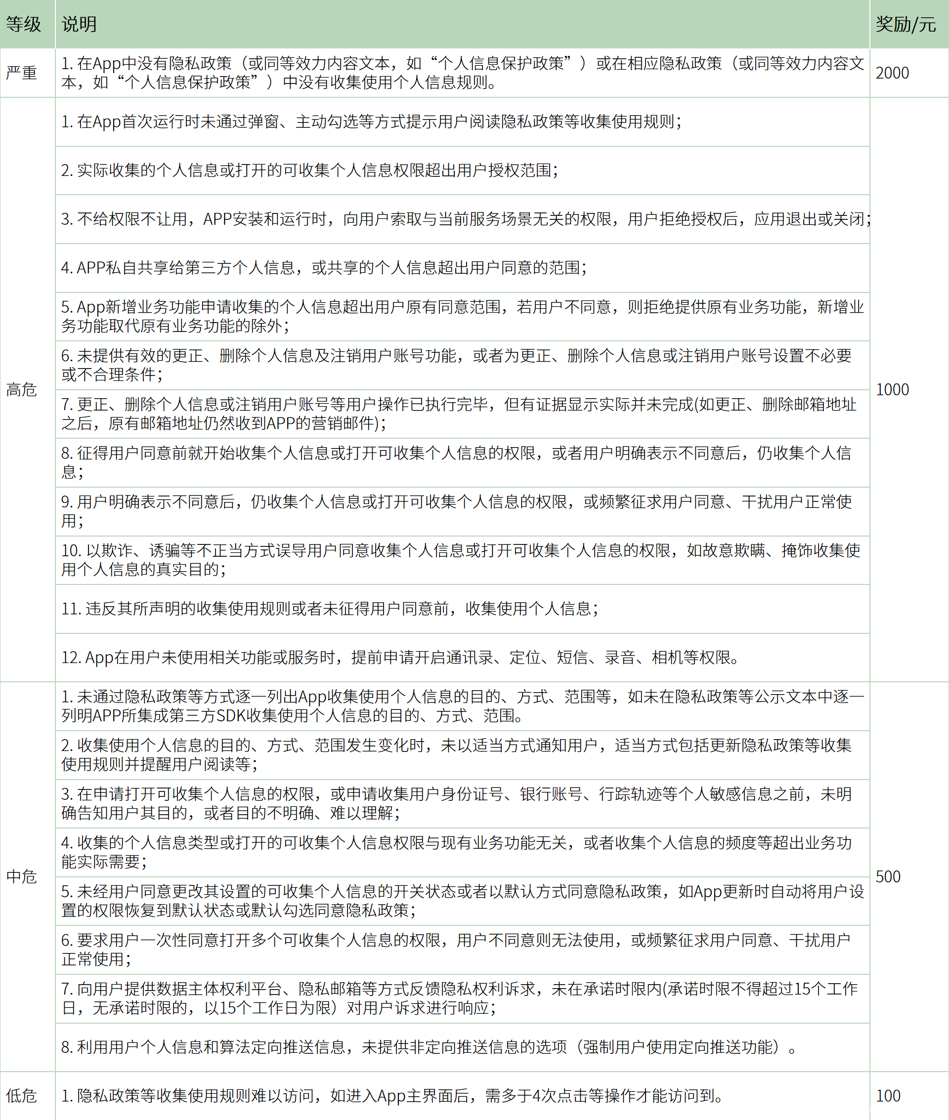 1. 《App违法违规收集使用个人信息行为认定方法》