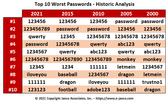 3、2021年最“弱”密码公布,你占了几个?