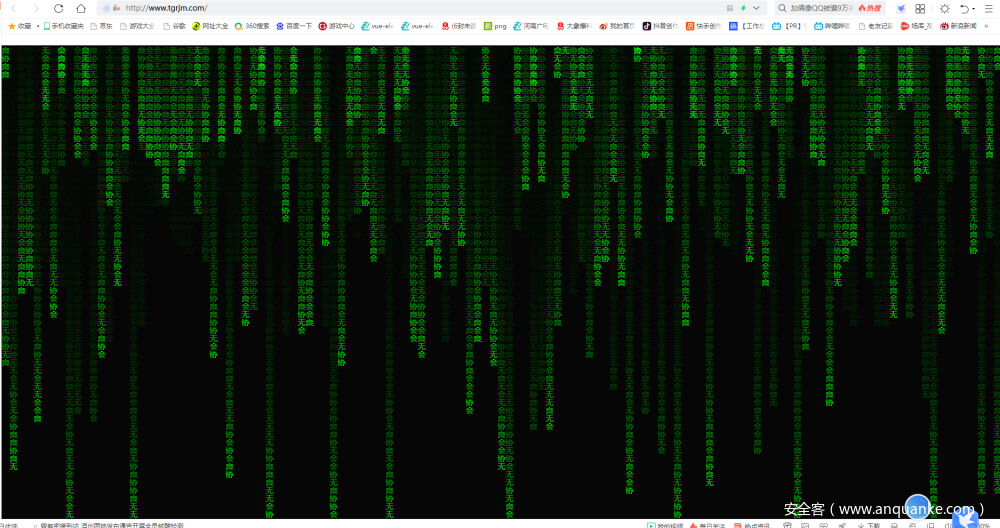 今天,陕西“潼关肉夹馍协会” 官网疑似被黑,网站页面背景变成黑色,无数绿色字样的“无良协会”从页面上方滑落,神似《黑客帝国》中曾出现的经典字符雨。