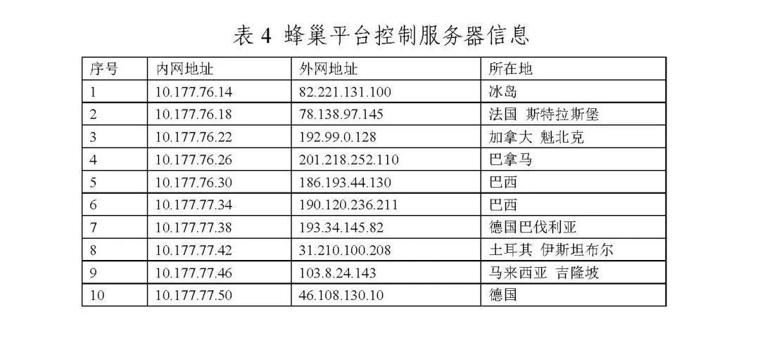 从已经监测到的数据分析,美国中央情报局(CIA)在主控端和被控端之间设置了多层跳板服务器和VPN通道,这些服务器广泛分布于加拿大、法国、德国、马来西亚和土耳其等国,有效隐藏自身行踪,受害者即使发现遭受蜂巢平台的网络攻击,也极难进行技术分析和追踪溯源。