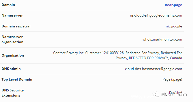 对其域名进行whois查询,域名服务商同样是谷歌,组织地址则显示为加拿大: