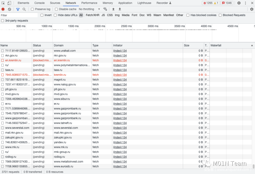 战争三大要素之一就是人,人是战争的主体,战争需要人来参与,网络空间作战也不例外。该组织利用了简单的技术和资源,却能够发动起针对俄罗斯的DDOS攻击,其主要利用全民参与的思想,将任何访问该页面的人都转化本地DDOS攻击中的一份力量,达到了四两拨千斤的效果。该DDOS攻击的网络流量完全依托于访问该页面的访问人员数量,利用网络中所谓“吃瓜”、“反战”等网络风向来诱导更多的人访问并进一步扩散。