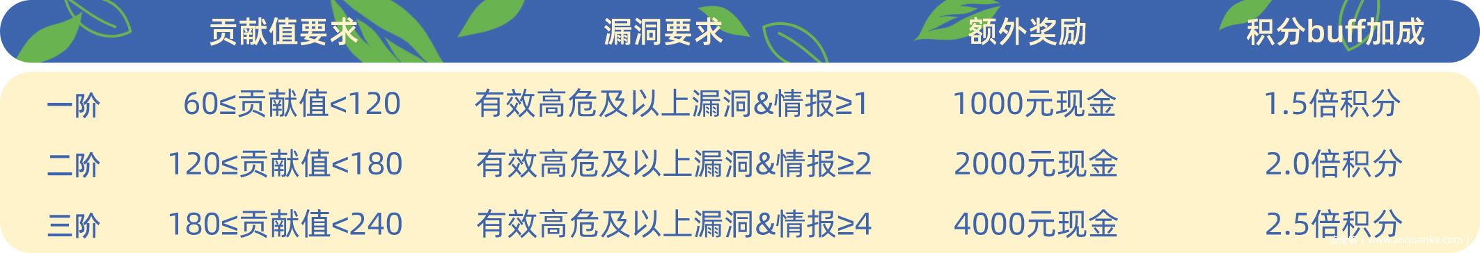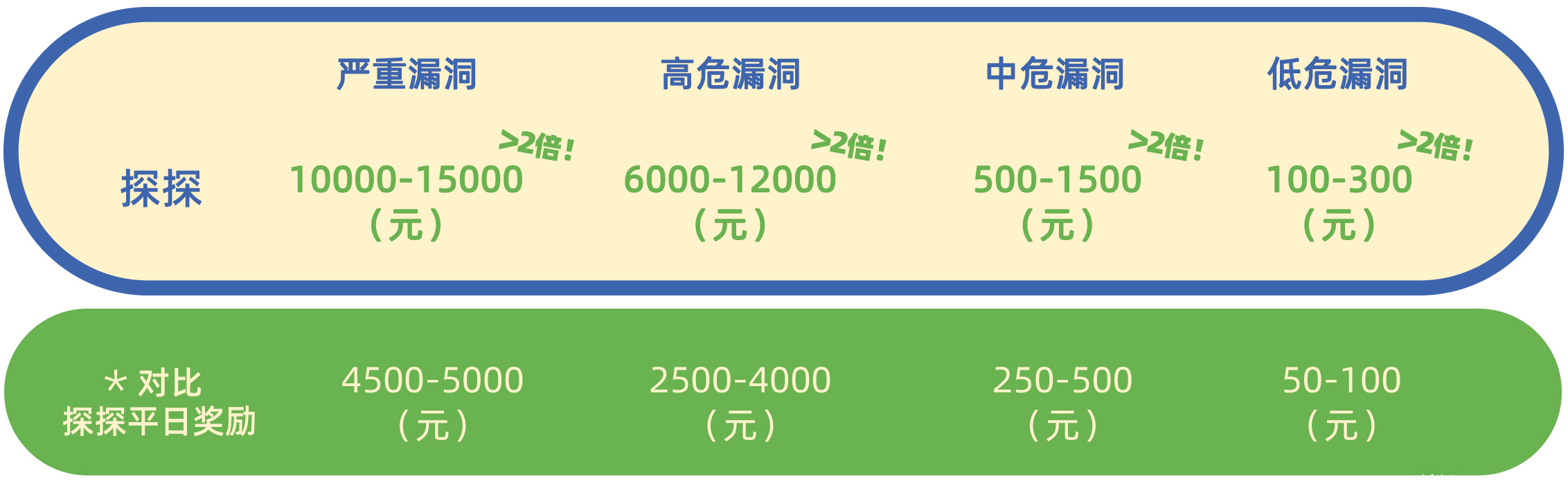 活动期间,探探相关有效漏洞&情报最高奖励15000元,奖励高达2倍,部分奖励甚至达3倍(哎呦不错哦