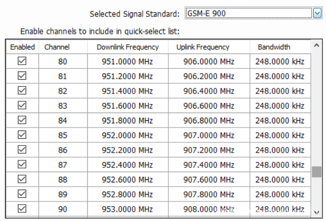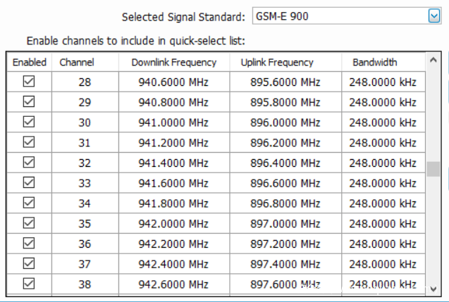 给大家分享两张全球某知名设备供应商的自动监测信号频谱表。