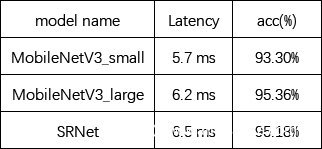 下表是对选定的三个备选模型进行前置训练(相同实验环境下)在测试集上的结果,我们从模型的性能方面与精度方面进行综合考察。可见MobileNetV3_large不论在精度和速度上都要比SRNet要更胜一筹。因此选用MobileNetV3_large模型作为识别隐藏水印的基础模型。