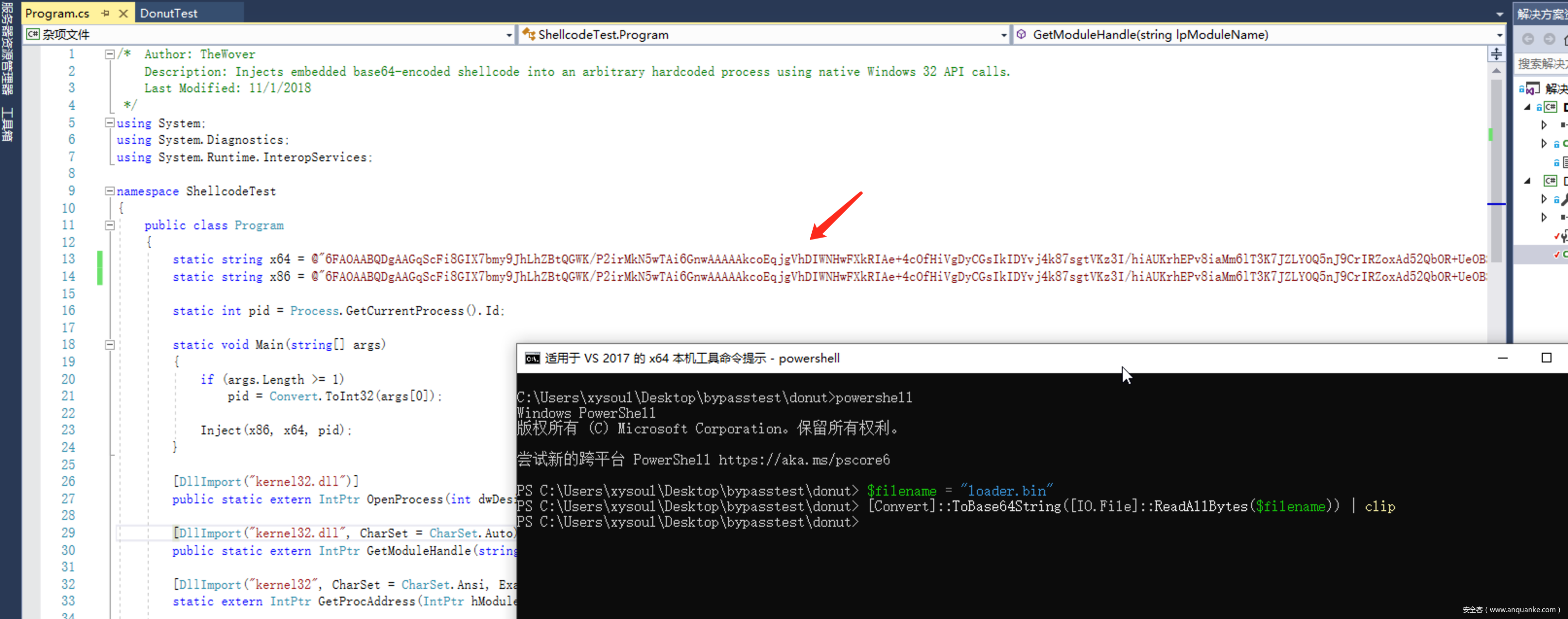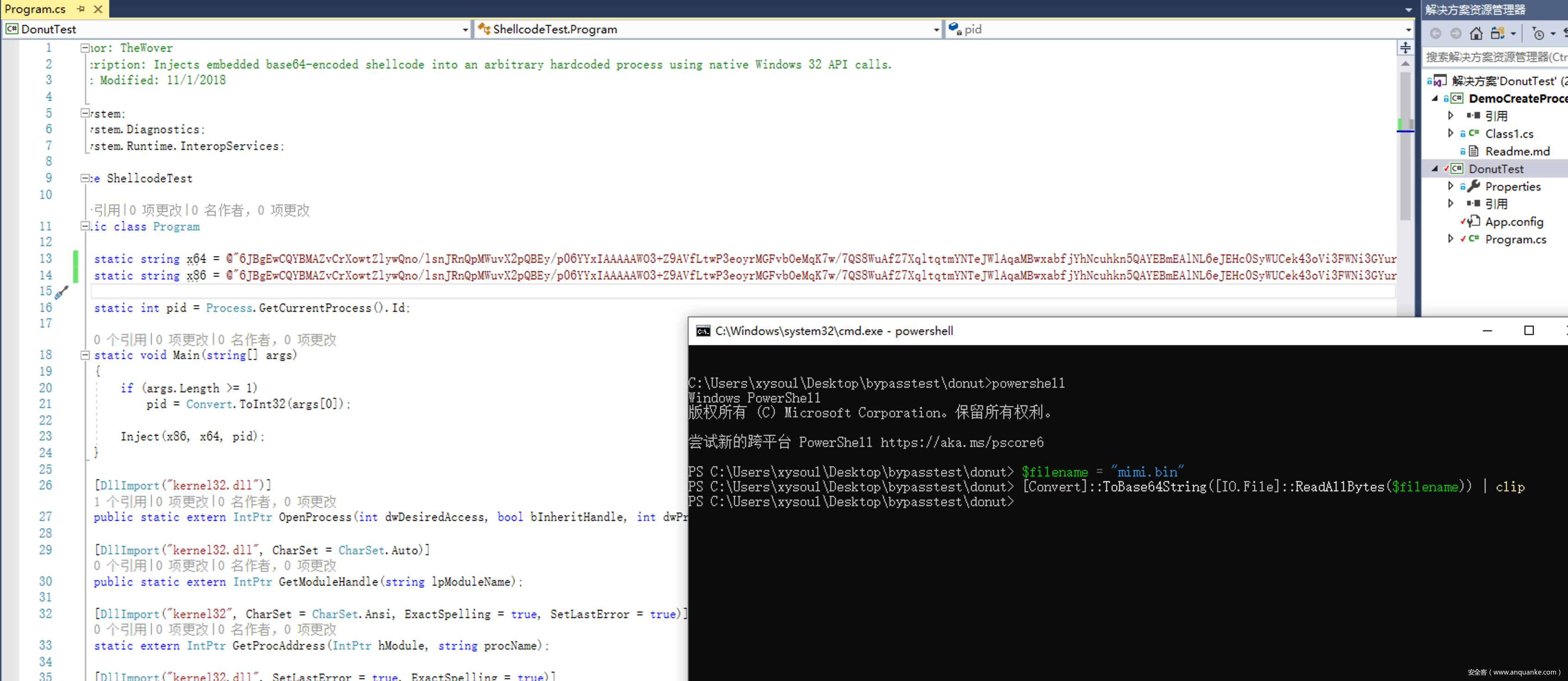 DonutTest:用于测试donut的简单C# shellcode injector。shellcode必须是base64编码,并以字符串形式复制。
