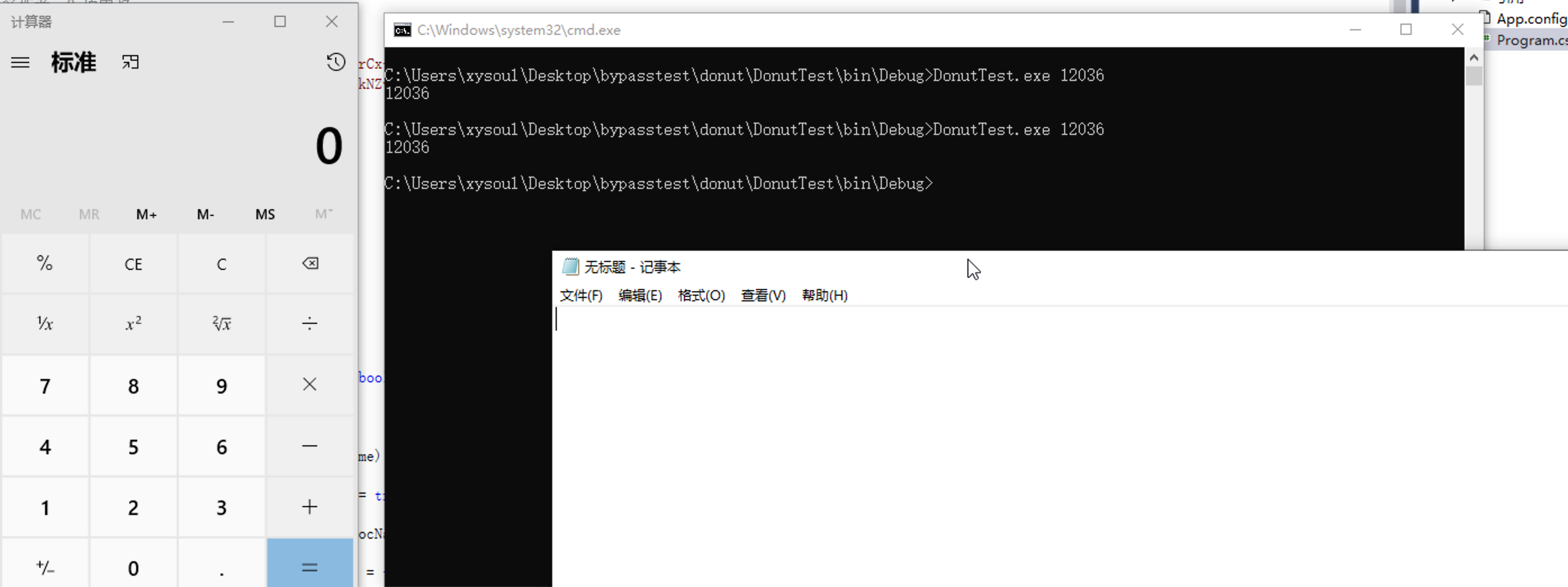 编译生成exe。在注入进程时,因为我的shellcode是x86的,所以注入到64位的notepad.exe中无法执行,需要注入到x86的进程中才可以。