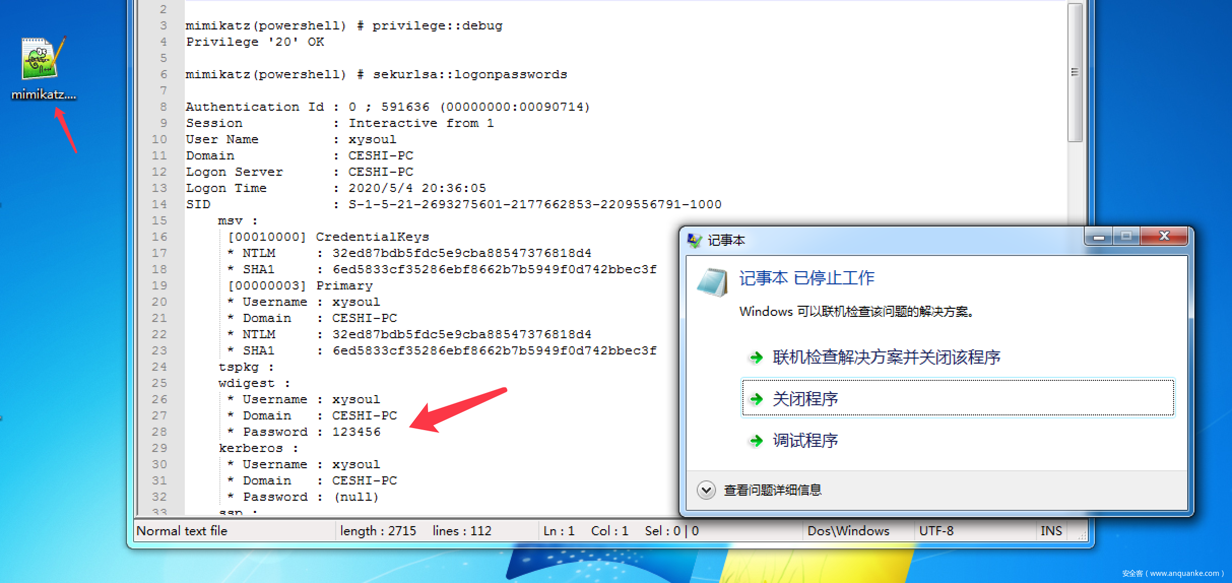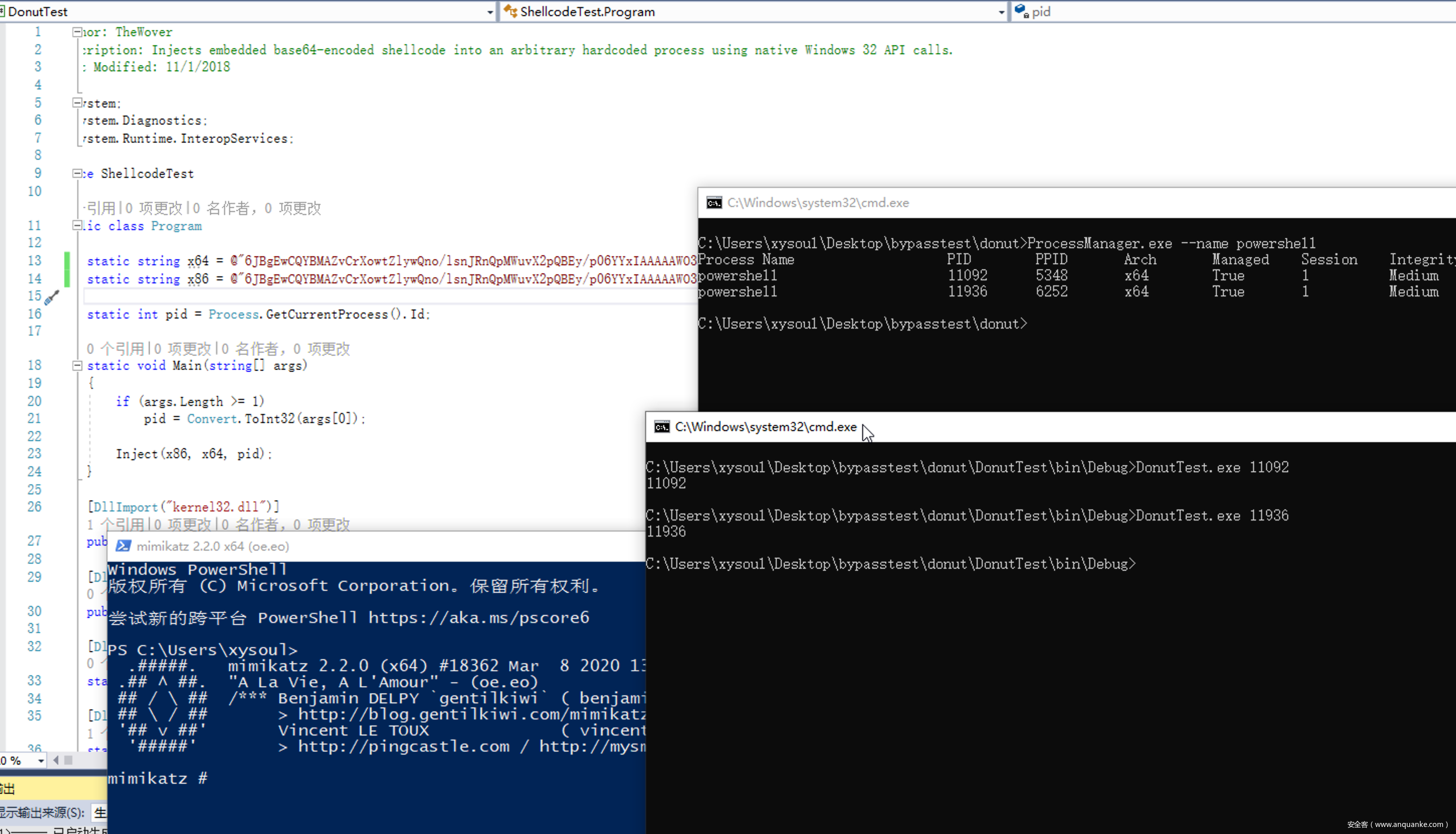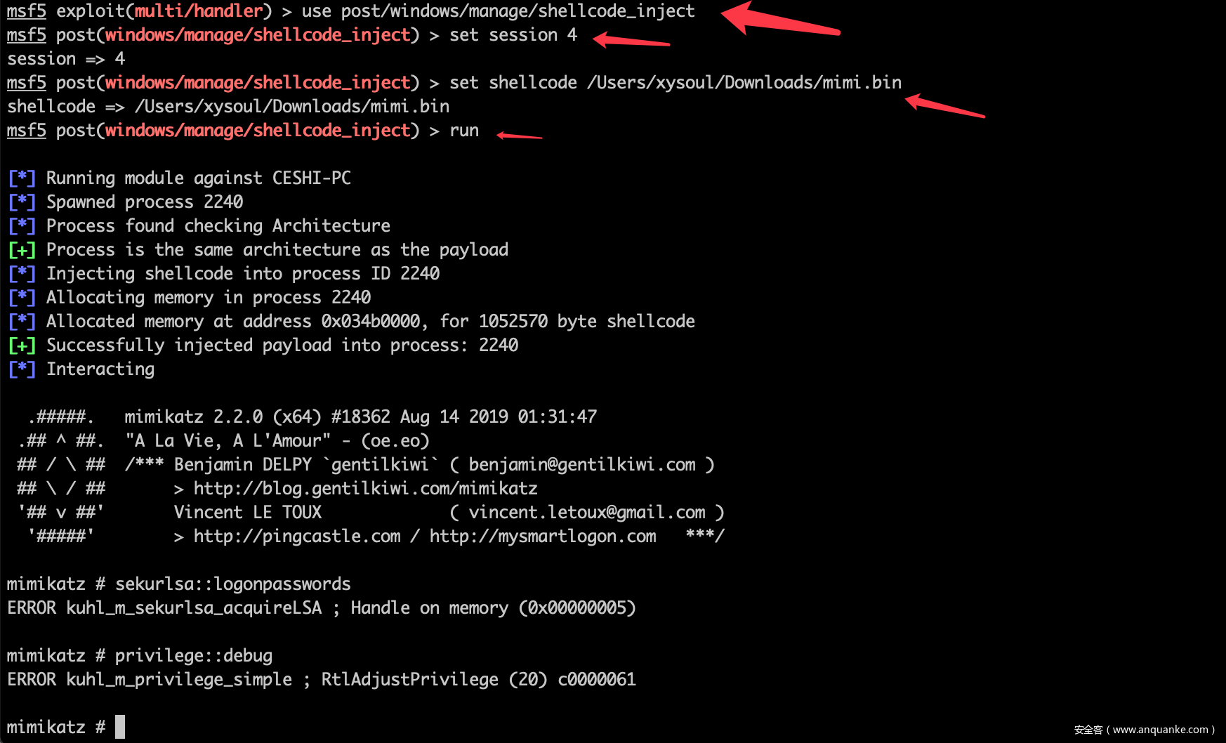 最后成功加载了mimi,使用shellcode注入执行,有更强的隐蔽性。
