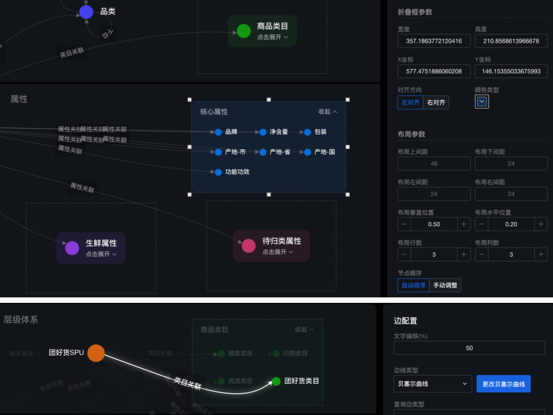 针对这种场景,我们实现了多项布局参数的配置化,用户可以根据领域图谱的特点优化布局参数,并作为配置保存下来。