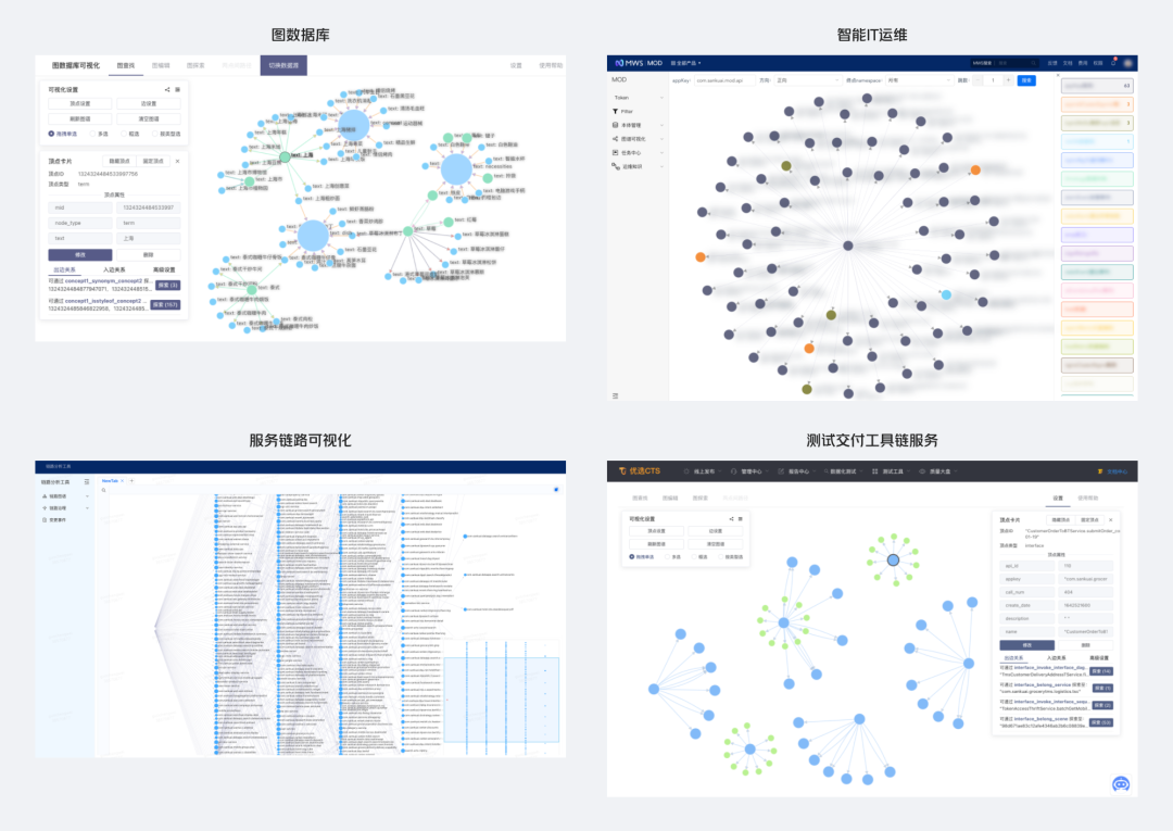 图分析应用:对业务场景中的关系类数据进行可视化展示,帮助业务同学快速了解链路故障、组件依赖等问题。