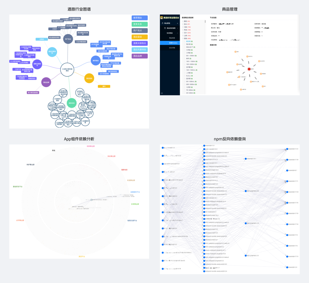 目前,知识图谱可视化技术方案已经应用在了美团多个业务场景中,包括美团大脑、图数据库、智能IT运维、组件依赖分析、商品标签管理、行业领域图谱等。未来,我们还将探索更多的应用场景。