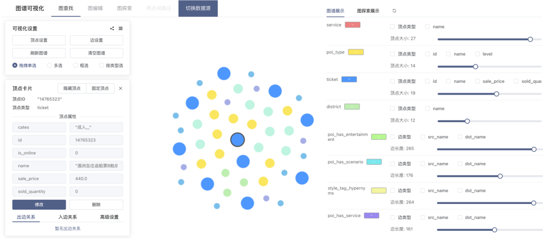 图查询应用:以图数据库为主的图谱可视化工具,提供图数据的编辑、子图探索、顶点/边信息查询等交互操作。