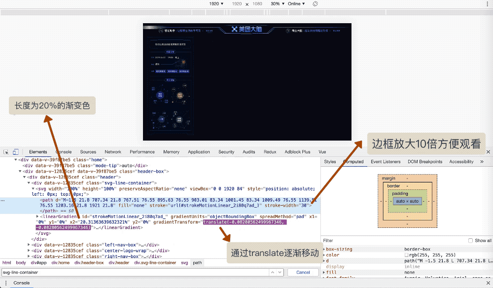 扫光效果对视觉观感的提升和视觉重点的强调非常有效,我们在做扫光效果的轮廓元素上,需要设计师提供两个文件,一个是轮廓的背景图片,一个是带有轮廓path的svg。经过技术调研,我们发现可以通过svg渐变或者蒙版来进行实现。