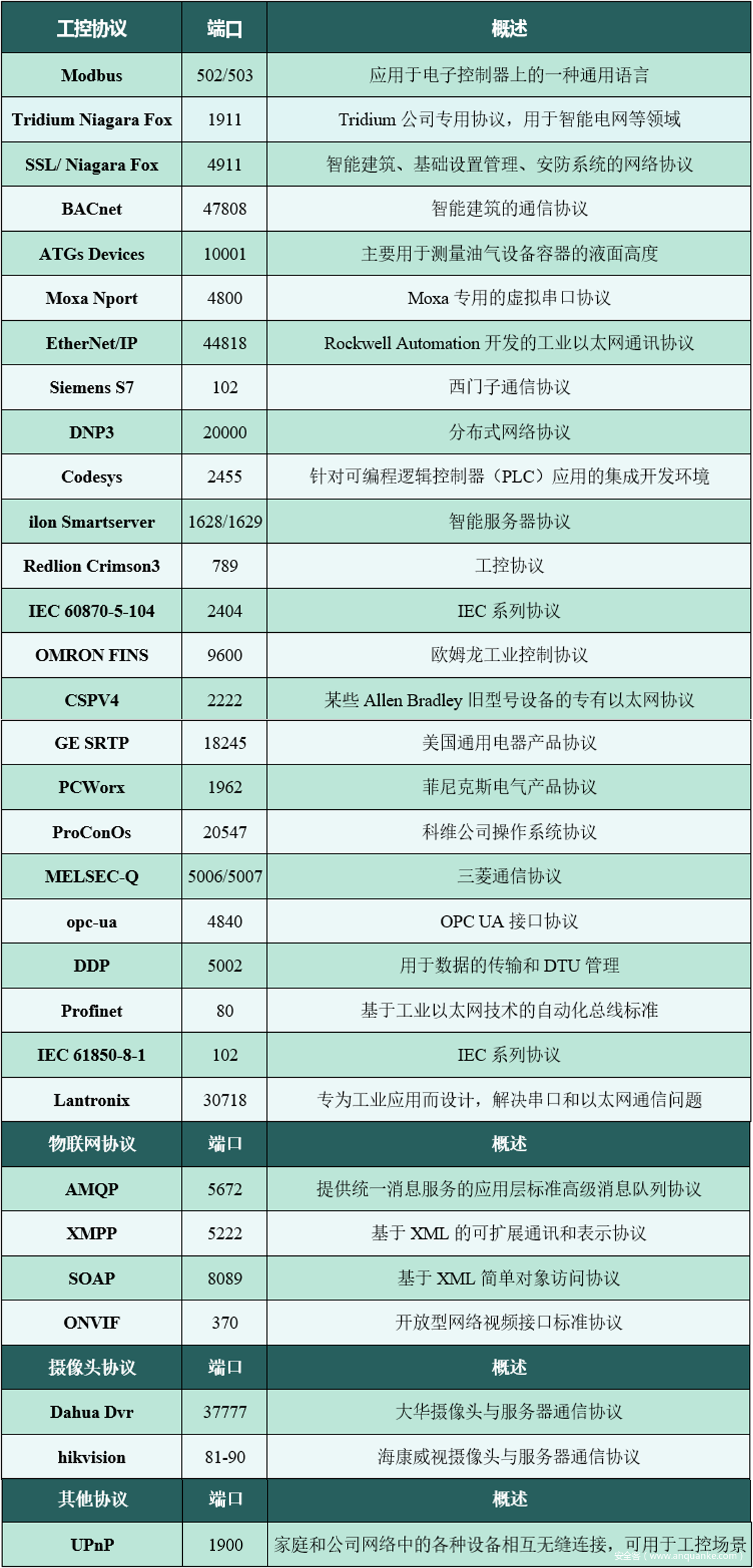 “谛听”网络空间工控设备搜索引擎共支持31种服务的协议识别,表5-1展示了“谛听”网络安全团队识别的工控协议等的相关信息。如想了解这些协议的详细信息请参照“谛听”网络安全团队之前发布的工控网络安全态势分析白皮书。
