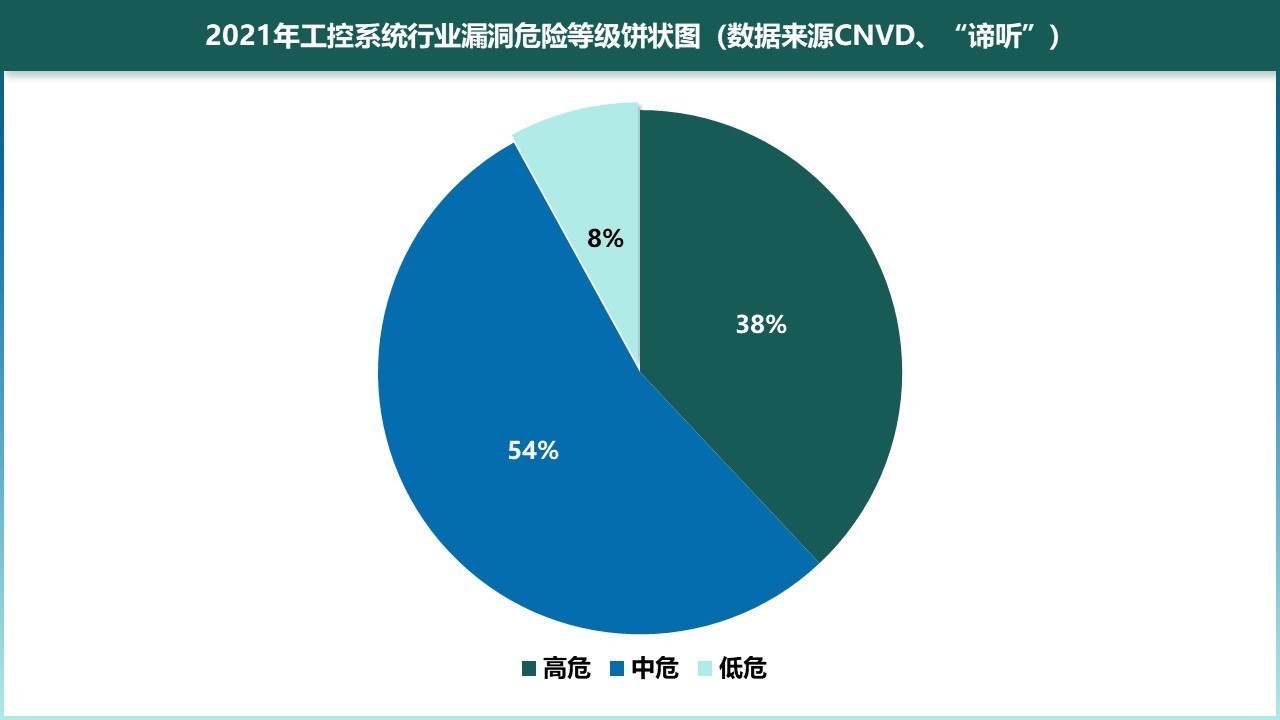 图4-2 2021年工控系统行业漏洞危险等级饼状图(数据来源CNVD、“谛听”)