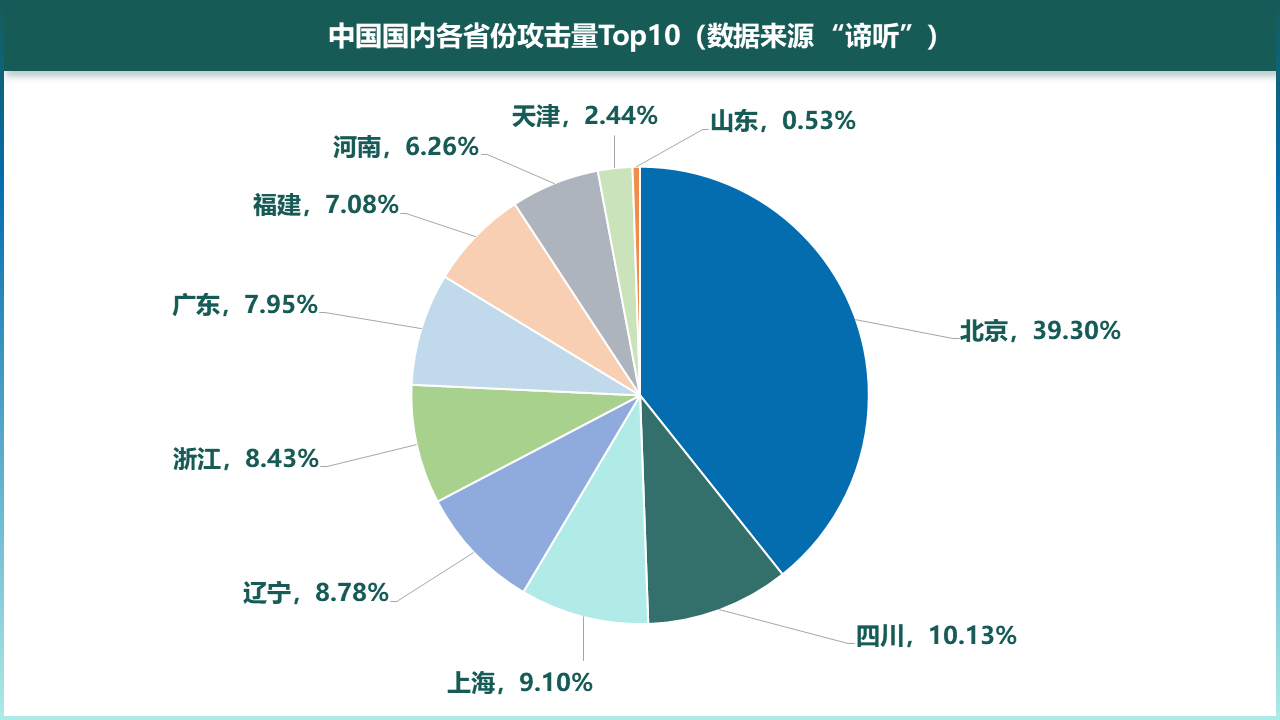 图6-3中国国内各省份攻击量(top10)(数据来源“谛听”)