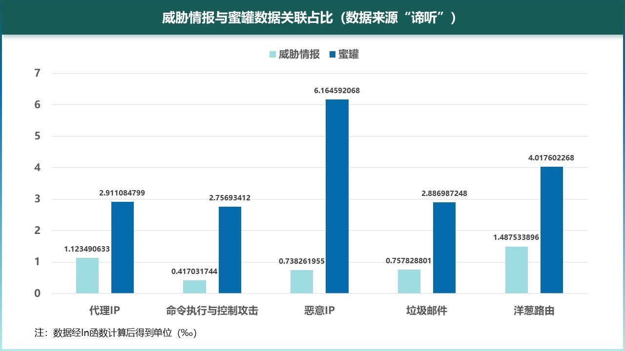 图6-6 威胁情报与蜜罐数据关联占比(数据来源“谛听”)