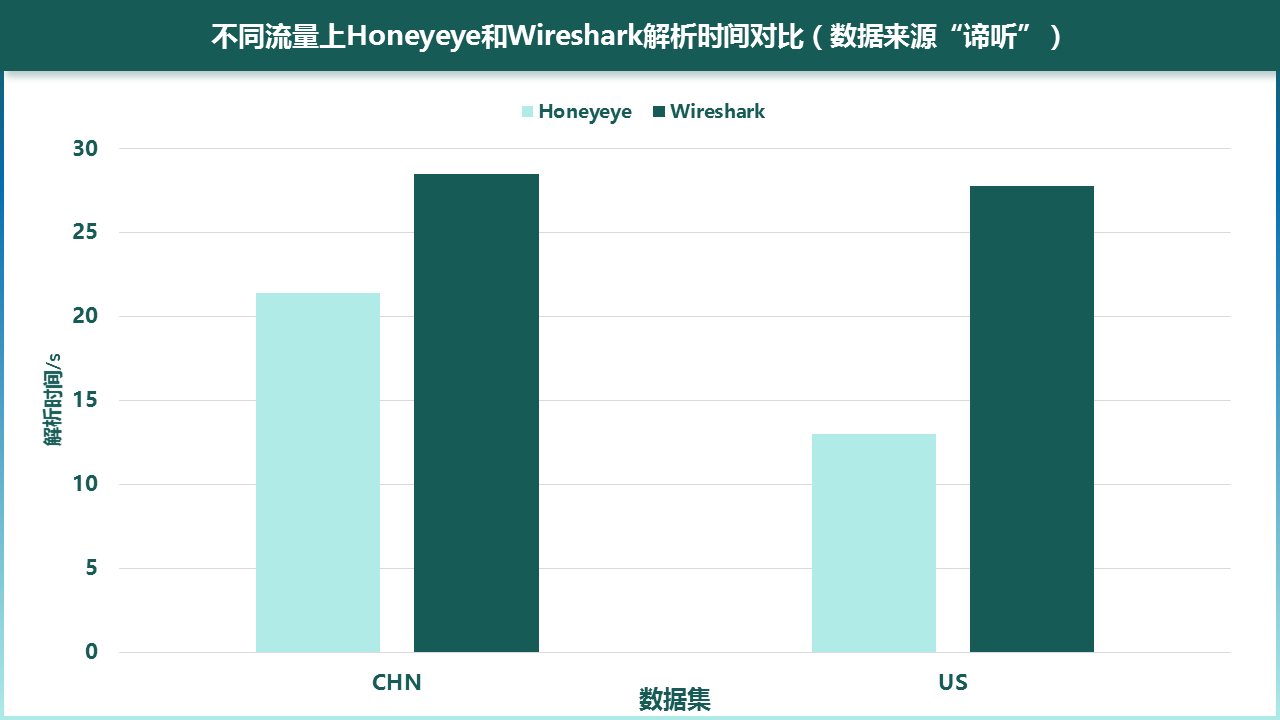 图6-7 不同流量上Honeyeye和Wireshark解析时间对比(数据来源“谛听”)
