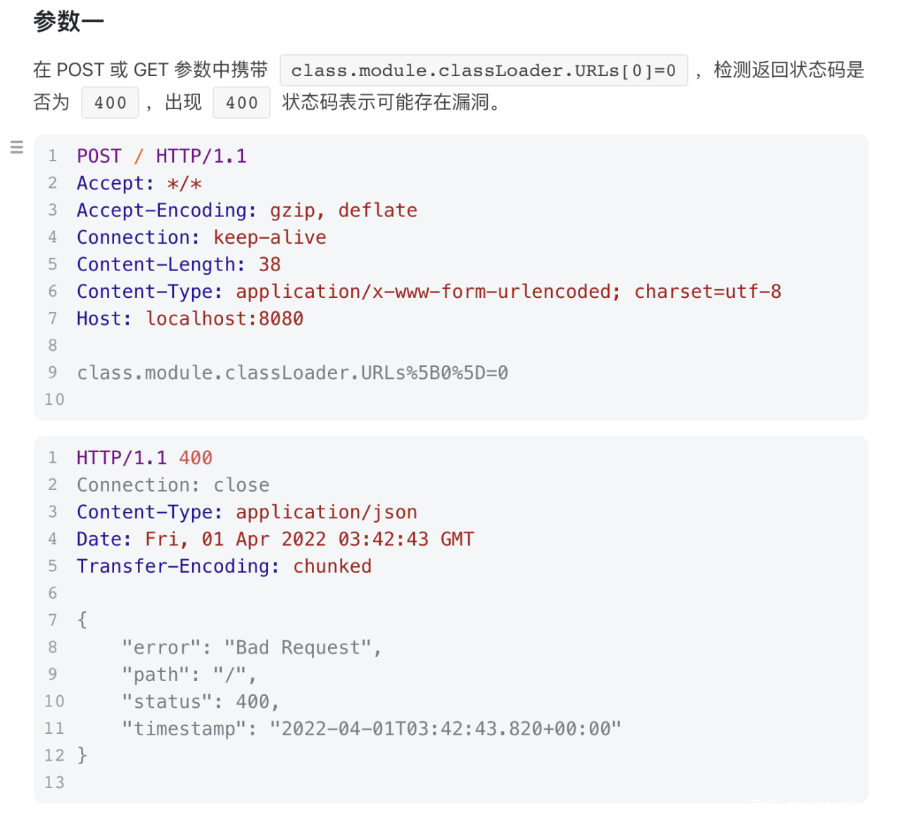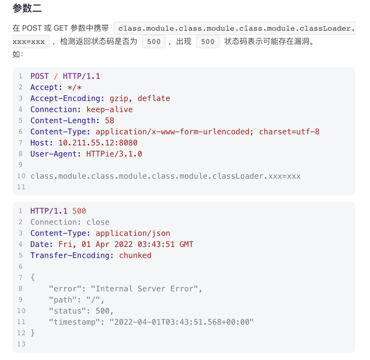 在可疑 HTTP 请求中构造以下参数,可以实现黑盒无害化检测。(*注:在实际测试中,HTTP 路径非固定,测试中尽量使用爬虫检测)