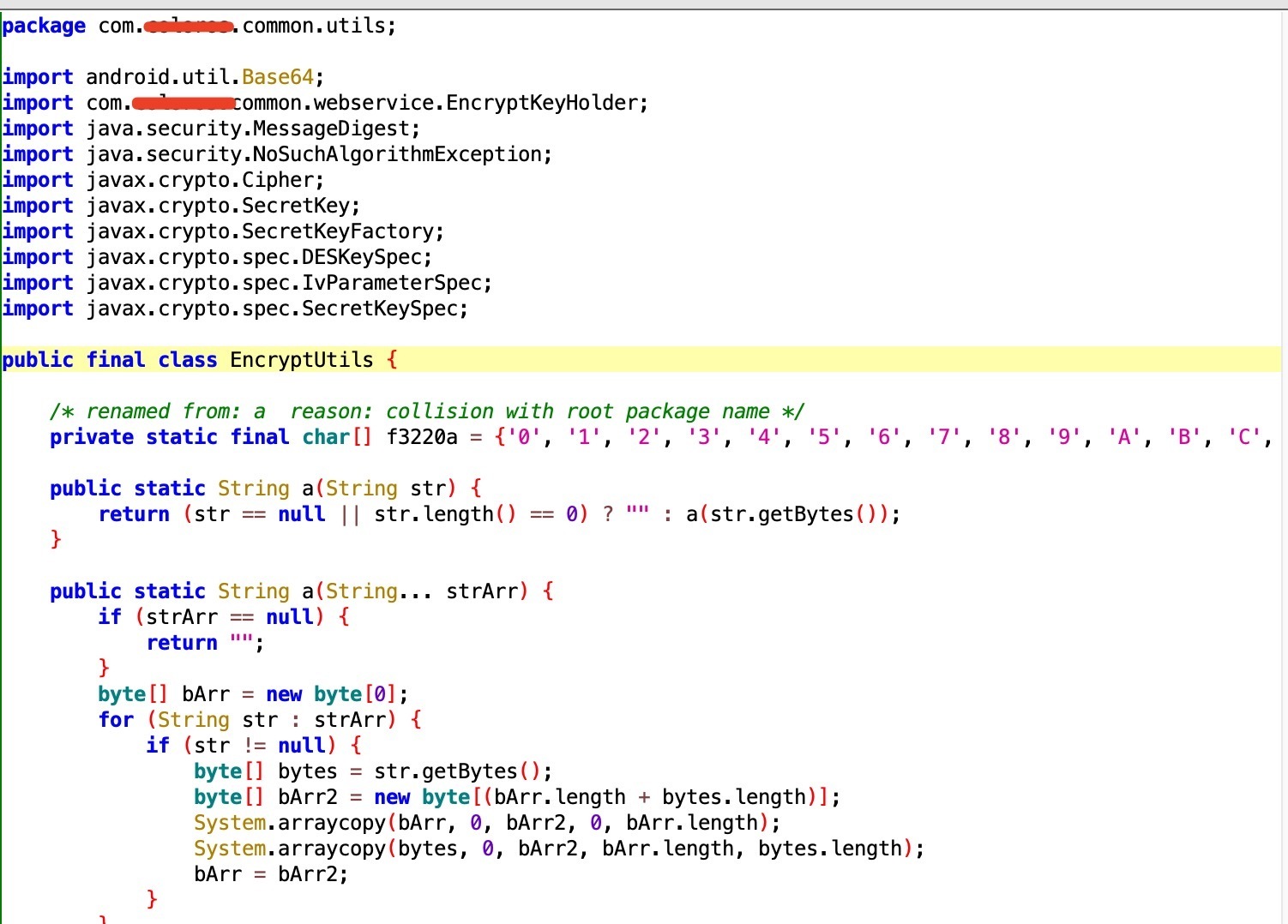 先jadx打开,定位算法,他没有加壳(我之前测过,定位加密算法过程简化了)。