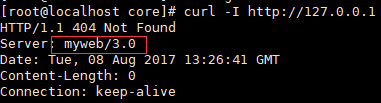 编译过程这里不做介绍,编译后运行效果如下图所示,可以看到http头中服务和版本信息都已经修改。