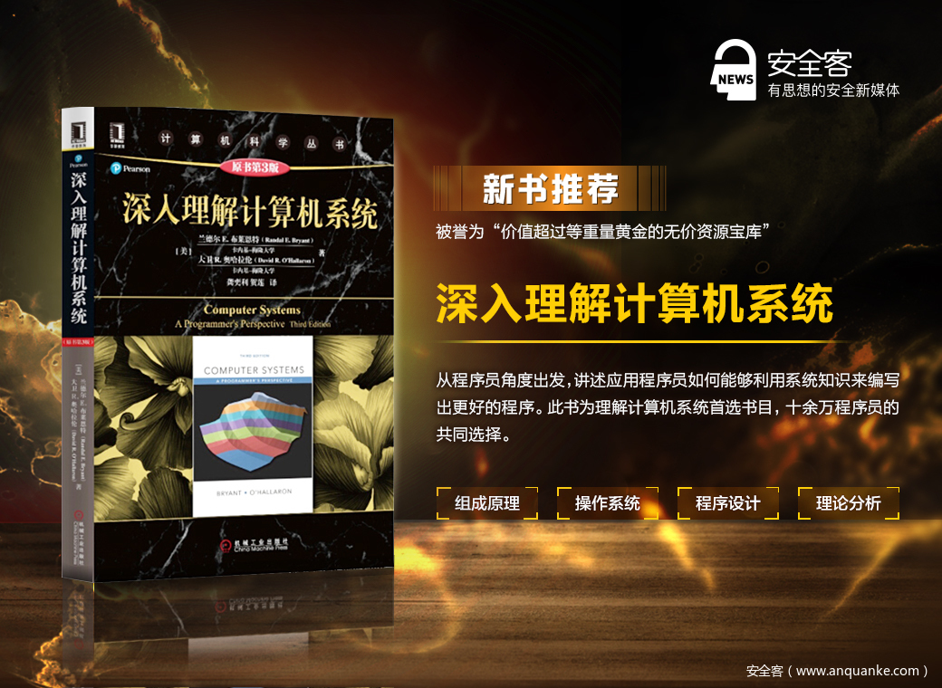 获奖方式2:关注安全客官方微博,在下方微博关注、转发、点赞、并留言(留言内容同方式一),我们会随机抽取2名用户,赠送《深入理解计算机系统》 !