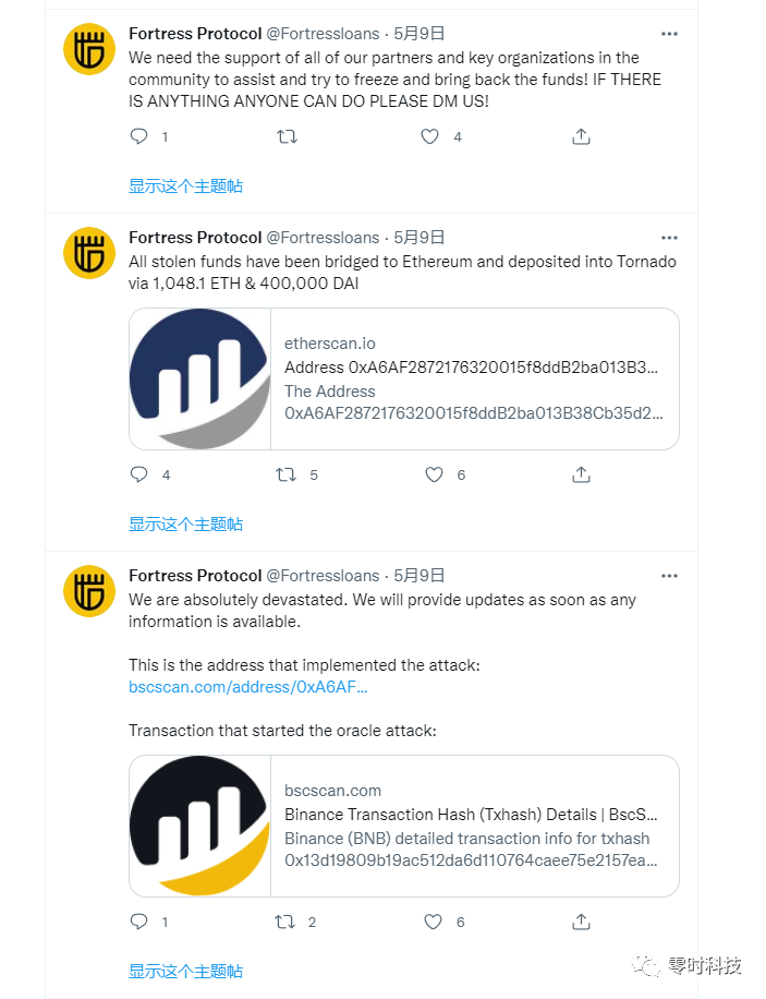 零时科技区块链安全情报平台监控到消息,北京时间2022年5月9日凌晨 Fortress Loans 遭到攻击。