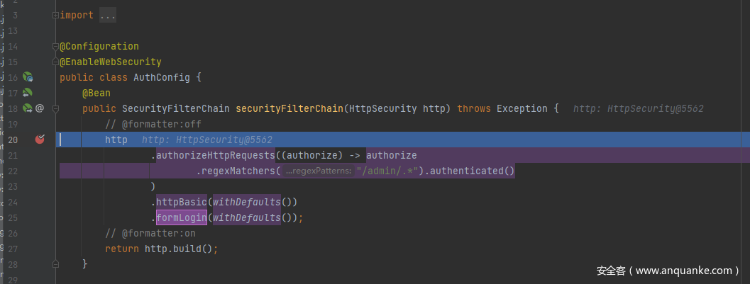 不过在之前分析shiro认证绕过也提到,在正则表达式中元字符“.”是匹配除换行符(\n、\r)之外的任何单个字符,在java中的正则默认情况下“.”也同样不会包含\n、\r字符,所以RegexRequestMatcher在进行正则匹配时不会处理\n、\r