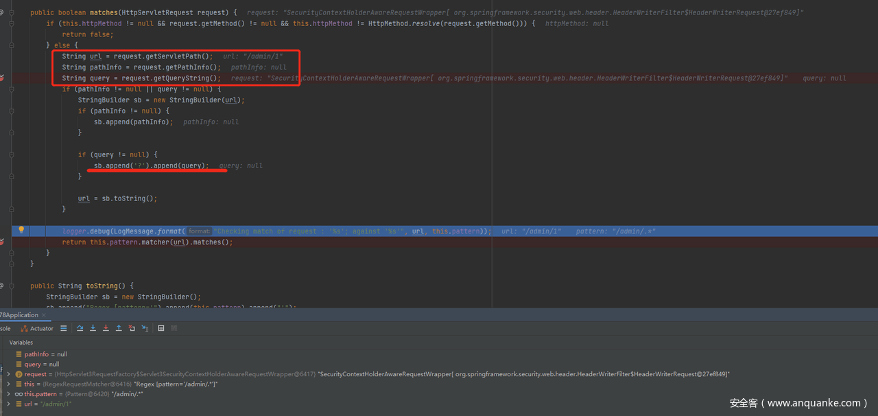 因为之前对CVE-2022-32532 Apache Shiro RegExPatternMatcher 认证绕过的分析,此次很快就将漏洞点定位在spring-security-web-5.6.3.jar中。
