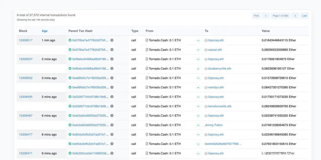 本周一(8 月 8 日),美国财政部外国资产控制办公室 (OFAC) 对混币协议 Tornado.cash 实施制裁,禁止美国个人和实体通过隐私工具进行交互或交易。不过在周二,有不明人士通过 Tornado 协议向多位名人发送了 0.1 个 ETH,疑似对制裁 Tornado 做出抗议。