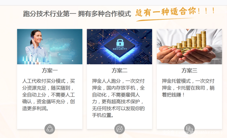 托管跑分:点击页面中的犀*、金**富,则跳转至跑分平台,并在页面发现了其使用的三种跑分方案。在对犀*和金*财富的上游引流页分析时,发现其除通过博彩平台引流外,还在色情网站进行引流,且通过色情平台进行赔付承保。