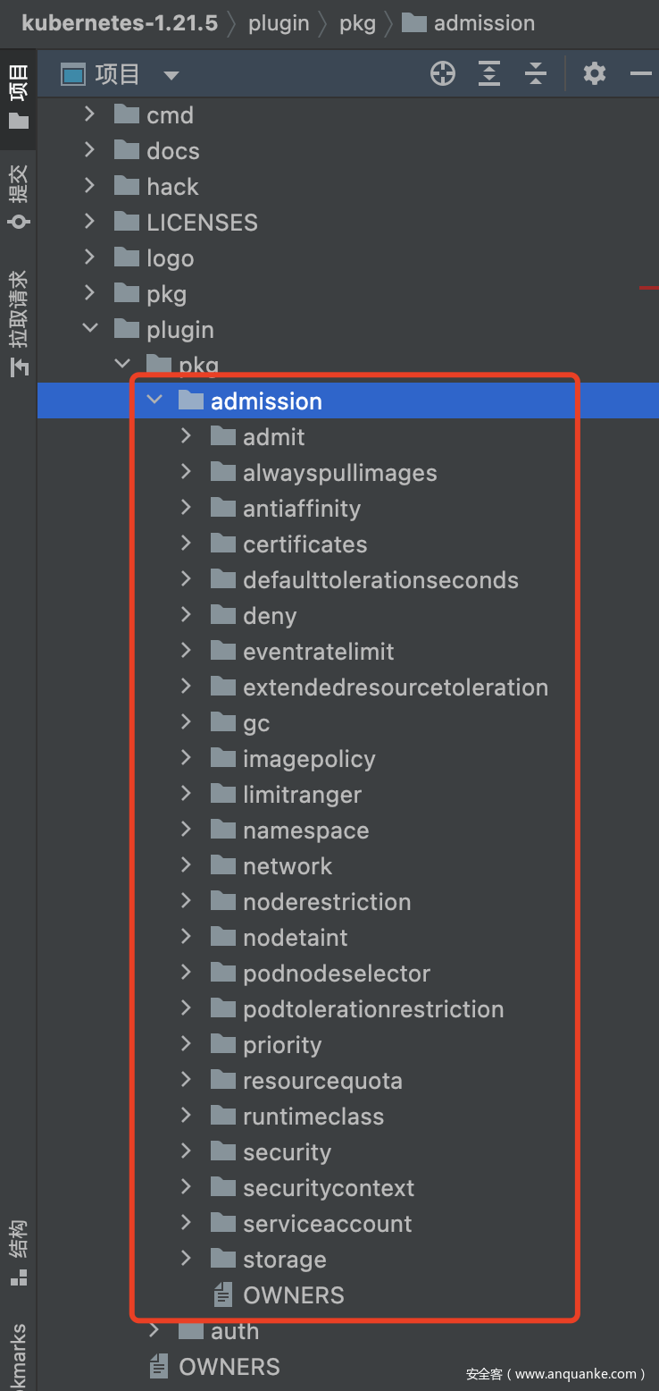 部分控制器代码在plugin/pkg/admission目录中,会实现Admit接口