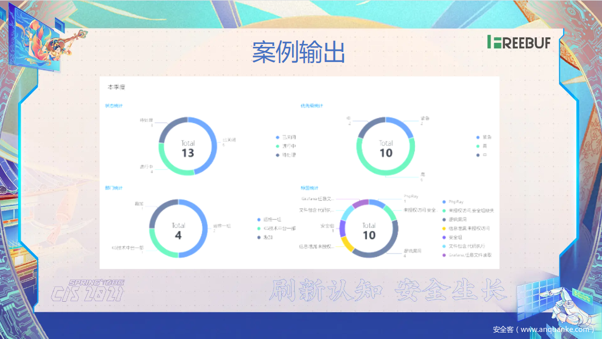 那这里有个图,就我们这个团队了,对公司的一些漏洞了一些整体情况。那有季度的一个报表,有这个部门的一个报表以及统计信息,就是它的漏洞类别的一些统计信息。