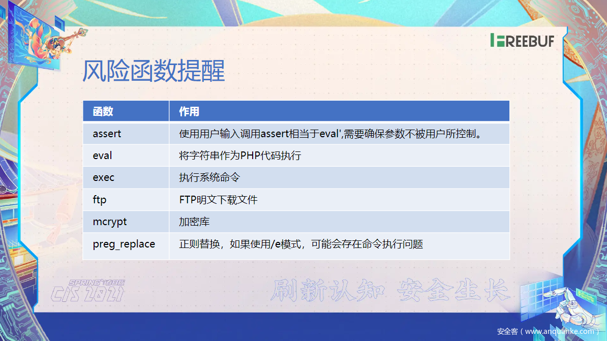 风险函数我简单列了几个函数,比如说这里了有这个代码注入的,有这个执行系统的命令的,有使用这个明文 FTP 下传文件的,
