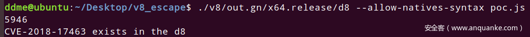 console.log("CVE-2018-17463 exists in the d8");