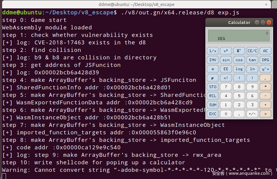 这改动会使得原本分开保存的各个属性在Object.create()后会被整理到一个大的hash表结构里。但是由于漏洞点,d8没有意识到存储方式的变化,也就是map模式的改变,猜测如果有side-effect的话是会反过来影响到原来的对象的,但是显然无视这个边后,造成了还是按原来的模式存取的情况,也就导致了按原偏移存取,最终泄露内存