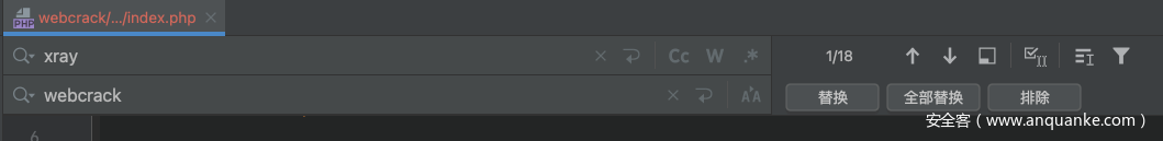 然后我们开始替换文件内容,直接将文件内容的xray改成webcrack,如下图所示