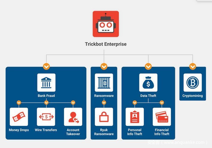 TrickBot,臭名昭著的Windows恶意软件平台。历经四年时间无数次被打击,因其团伙高级成员换地,转移到Conti勒索软件团伙,或将被更隐蔽的BazarBackdoor恶意软件取代。