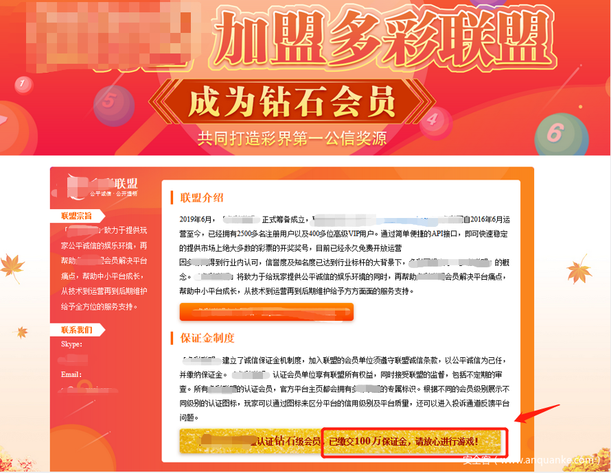 点击页面中的奖源认证,会跳转至多*联盟的会员认证入口,其页面内容介绍“恒*为多*联盟认证钻石级会员,已缴交100万保证金”,从而让赌客相信赌博平台不会“跑路”。