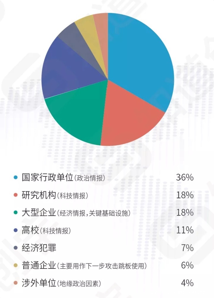 国家背景的APT 攻击有着复杂度高、对抗性强、隐蔽性强等特点,通常有着窃取政府单位的国家机密、重要企业的科技信息、破坏网络基础设施等强烈的政治与经济目的。网络空间安全的格局虽不断变化,但隐藏在迷雾背后的,往往是国家间的博弈与较量。