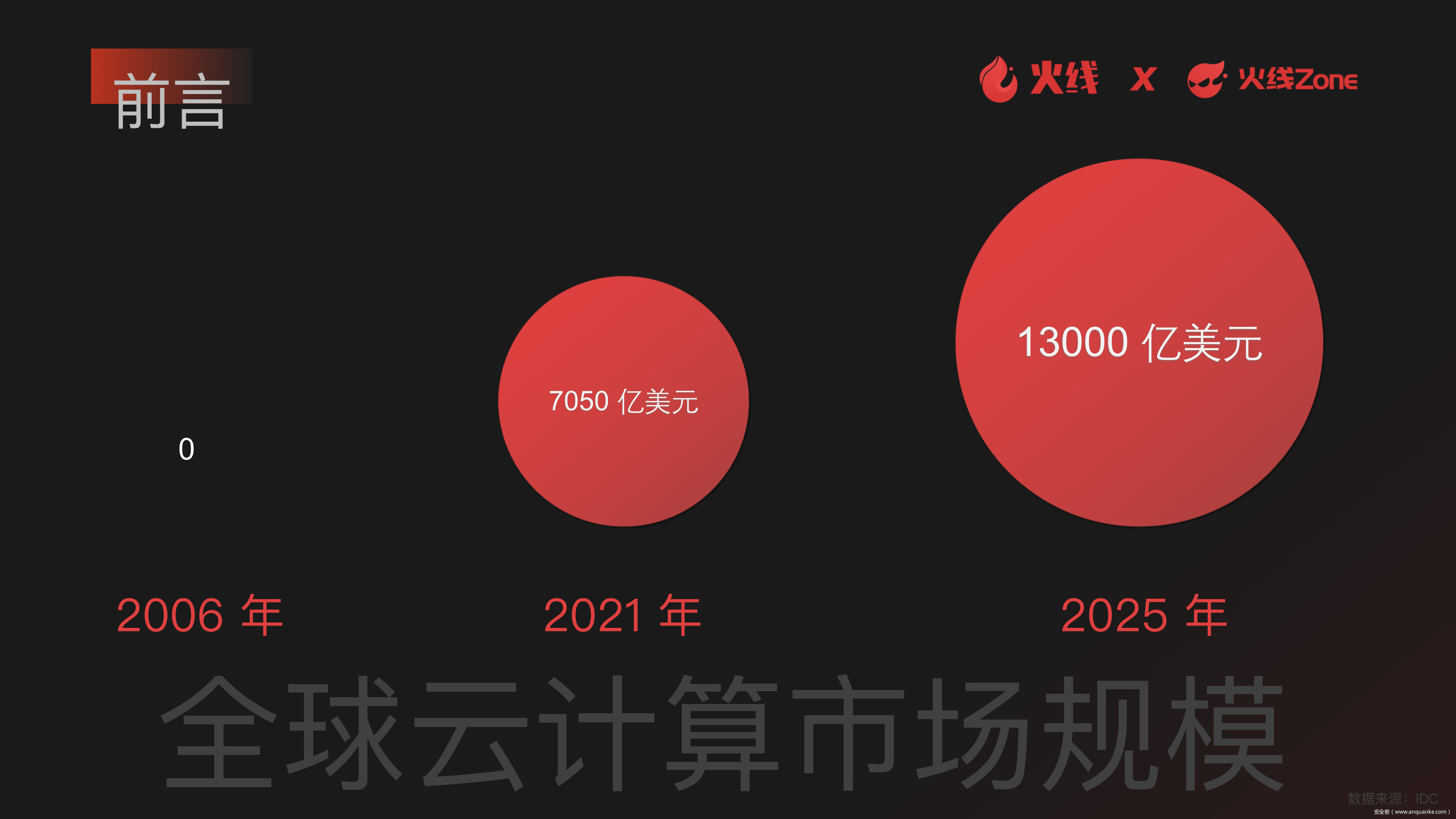 根据 IDC 的数据,在短短 16 年内,全球整体云计算市场规模从零增长到 2021 年的 7050 亿美元,到 2025 年将预计达到 1.3 万亿。
