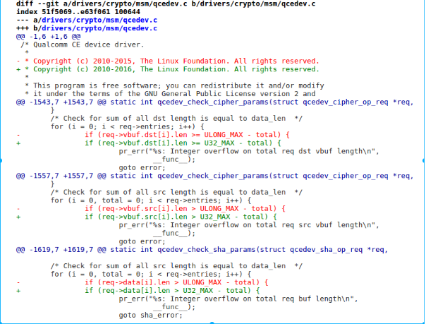 * git checkout 6cc52967be8335c6f53180e30907f405504ce3dd drivers/crypto/msm/qcedev.c