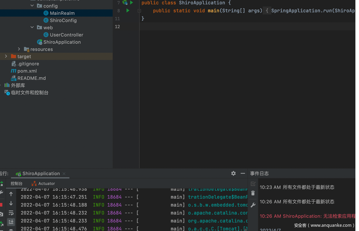 利用shiro反序列化漏洞,注入内存马。我们启动一个shiro+spring的反序列化的漏洞环境。