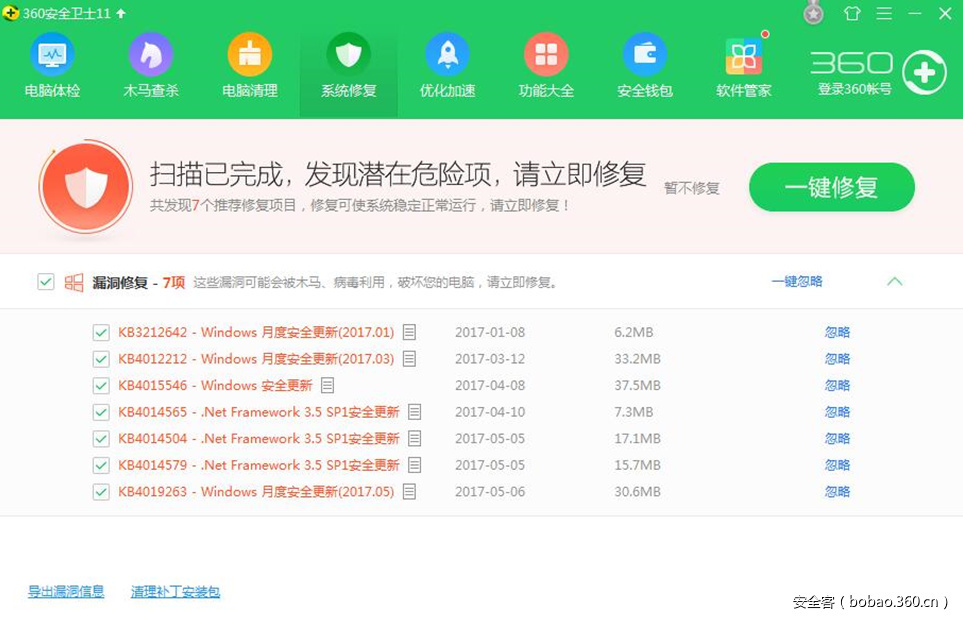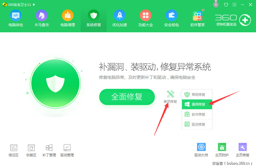 1.首先安装360安全卫士,选择漏洞修复,打好安全补丁,预防再次被攻击