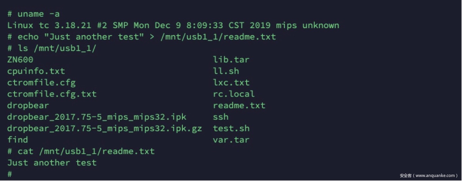 再者,如果你不想去动系统相关的配置文件,那也可以在ZN600的U口上插个U盘,这样也能实现容器内外之间的文件共享。