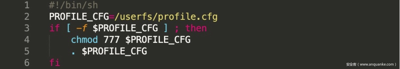 Step 1:检查配置文件。如果/userfs/profile.cfg配置文件的确存在的话,把文件的权限修改为可读可写可执行。这个有点没明白,配置文件为什么要搞成可执行呢?