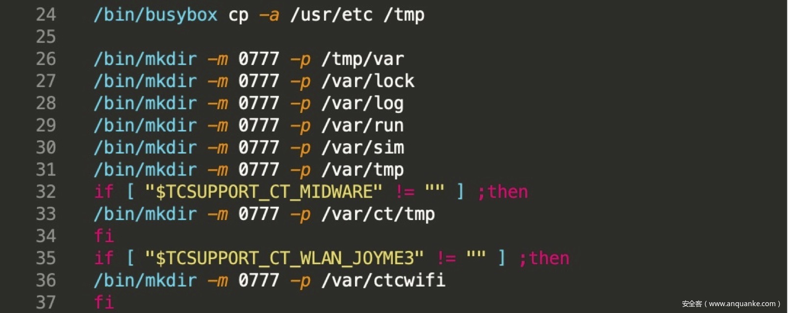 ZN600光猫的启动脚本是/etc/init.d/rcS文件,说实话这文件还真值得仔细品品,一是可以学到很多shell脚本知识,这个脚本绝对不会让我这么个脚本小子去写的;二是,的确可以了解天翼网关的各种瓜,哈哈哈。