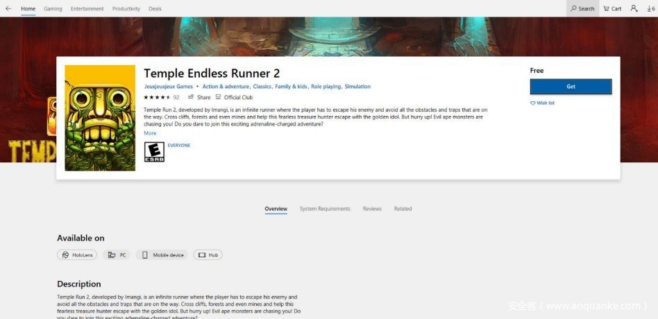 3、克隆“神庙逃亡”,流窜微软商店放“毒”